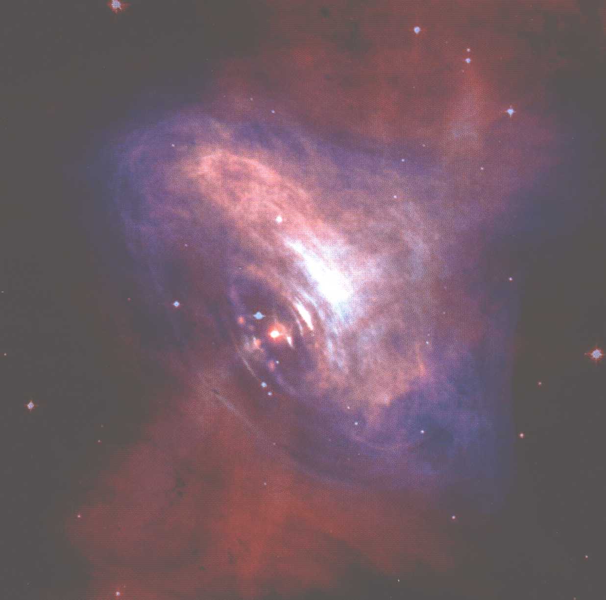 Now what happens to the collapsing core of a supernova ? In the 1930s, two astronomers working in the US, Fritz Zwicky and Walter Baade, suggested that it shrank into a small ball, smaller than a white dwarf, made entirely of the subatomic particles called neutrons. In 1967 two radio astronomers at Cambridge, Tony Hewish and Jocelyn Bell, picked up regular radio signals coming from the sky. They dismissed the idea that it might be "little green men" trying to contact Earth, and realised that instead they had found some kind of natural light-house in space.