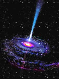 Recent images taken by the space X-Ray telescope have shown a number of very large stars spiralling in, at enormous speeds, towards a massive object in the centre of our galaxy. This object has a mass many millions of times that of our Sun and appears to be quite small. It must therefore be a Super Massive Black Hole. The centre of our galaxy is in the direction of the constellation of Sagittarius but is obscured from the view of ordinary telescopes by huge clouds of gas and dust. Fortunately the centre of our galaxy is quiet at the moment but some galaxies have very active centres where huge numbers of stars are being destroyed by Super Massive Black Holes.