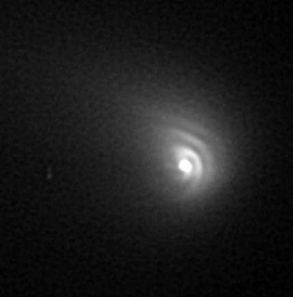 The nucleus of a comet is usually very small, in the region of 10 kilometres across. The nucleus is similar to a dirty snowball, a mixture of frozen water, frozen gases, and grains of dust and rock. When a comet is far from the Sun, temperatures are so low there is no evaporation from the nucleus at all. At such great distances the Sun appears as a bright star, and provides no heat. Reflected sunlight is minimal, and the comet cannot be seen.