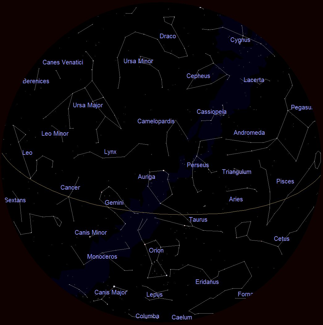 NOTE : Constellations shown in bold print are circumpolar from Britain.