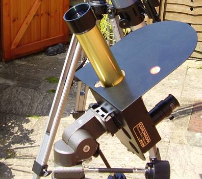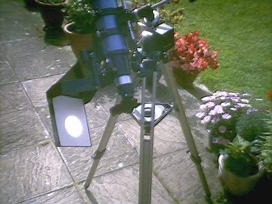 the projection screen and eyepiece removed and fitted with a special solar filter