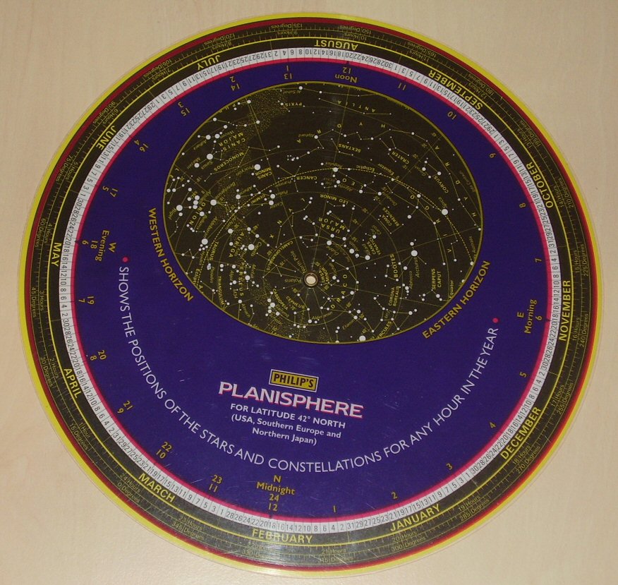 One of the first questions asked, when thinking about taking up astronomy as a hobby is, what equipment do I need? The simple answer is, very little to get started. A clear night and a star chart is enough. Star charts can be bought from most of the larger book shops such as W. H. Smith. Another option is to by a 'Planisphere' This is a special circular chart set in rotating discs that can be set to the time and dat required. The window on the planisphere will display the visible sky at that set time. These devises are very useful as they display the sky as it actually appears at the time you choose to observe.