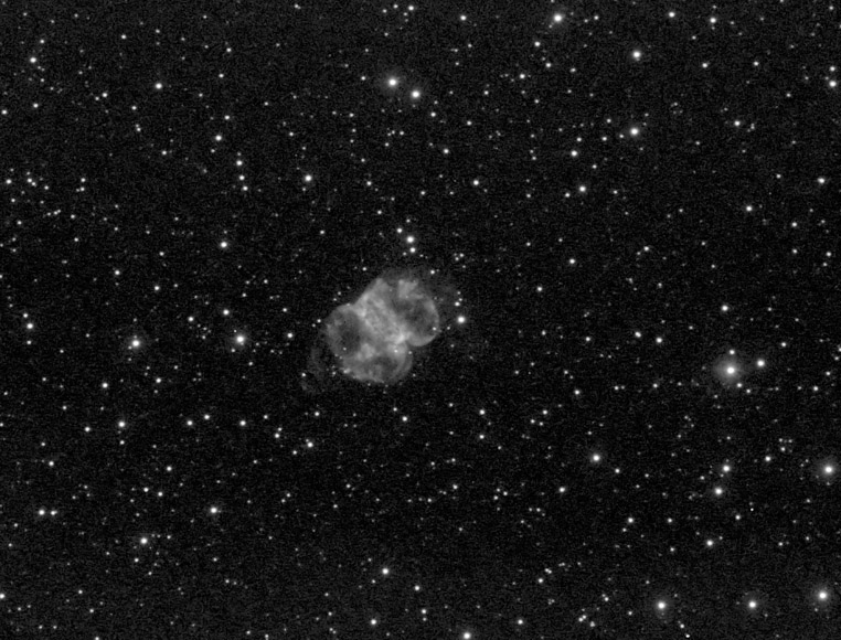 After passing though that red giant phase it gently collapsed to become a White Dwarf. The very thin outer mantle of the red giant drifted away into space as the star collapsed. The white dwarf is now surrounded by a bubble of gas and dust. It looks like a small ‘smoke ring' when seen through a telescope but can't be seen using binoculars.