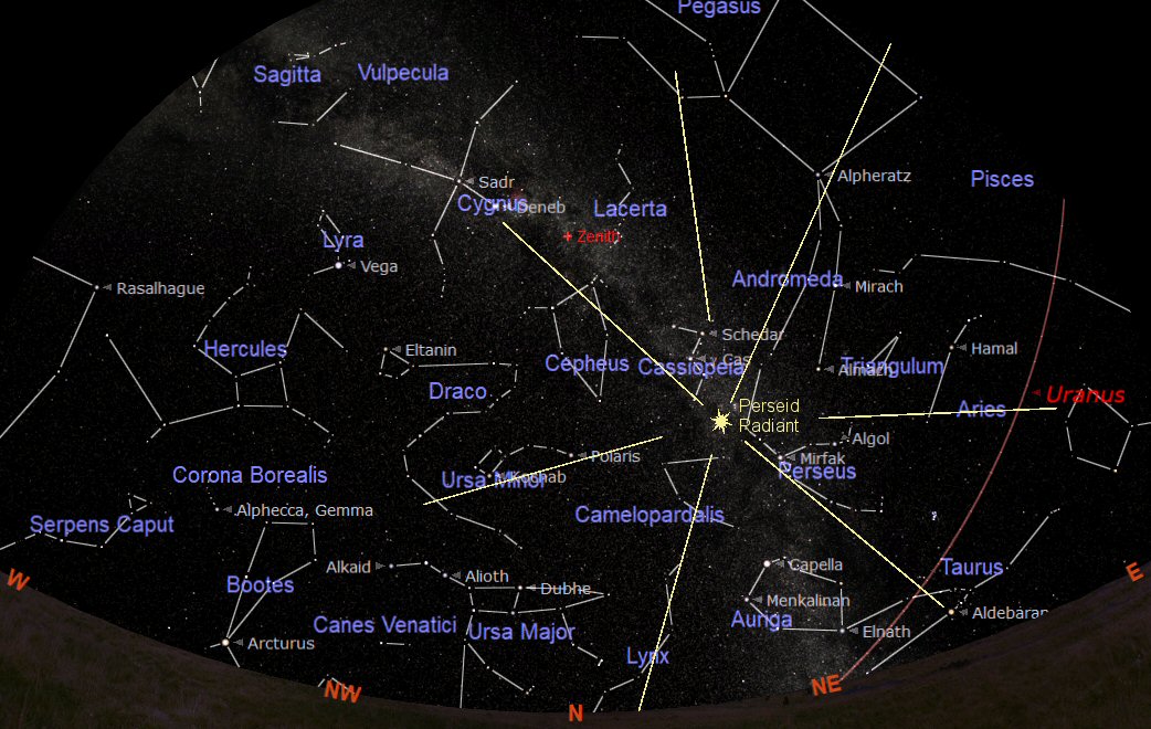 The Perseid Meteor Radiant at 01:00 14th August looking north