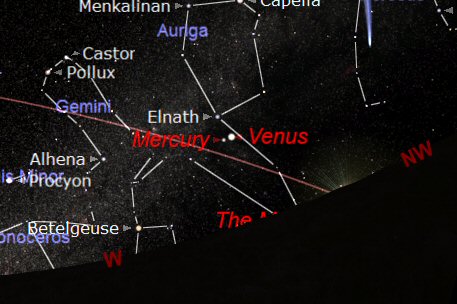 MERCURY will be observable, low in the west, at the end of the month. Mercury will be in close ‘Conjunction' with Venus on 21st and 22nd May.