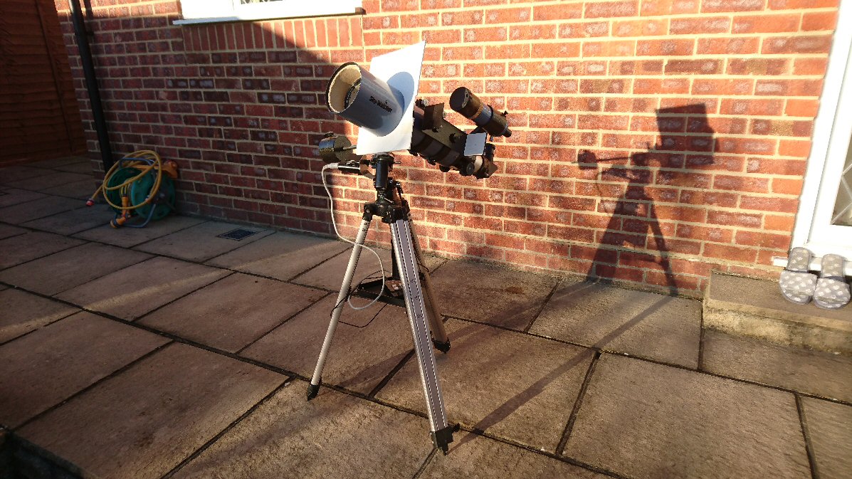 The author's small Telescope fitted with a Solar Filter inside the Dew Shield