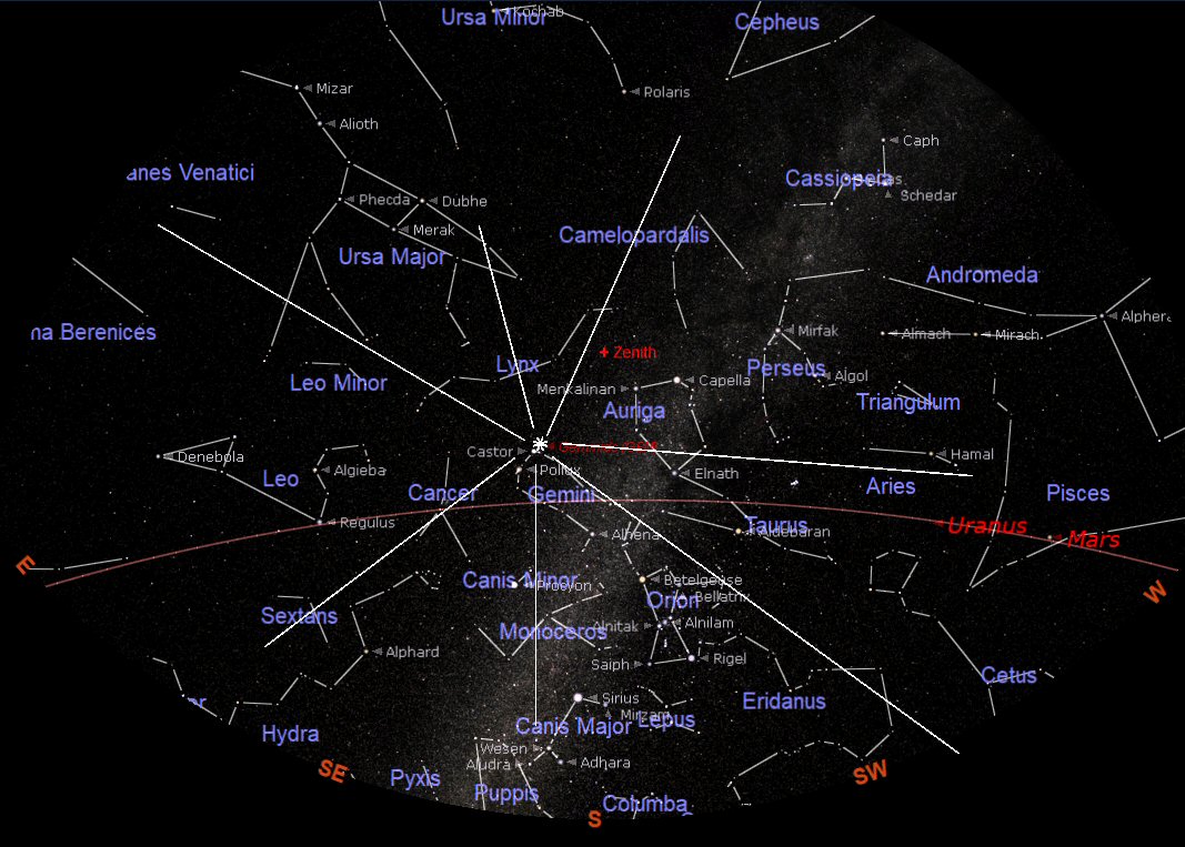 The Geminid Meteor Shower – showing the Radiant Point in the constellation of Gemini