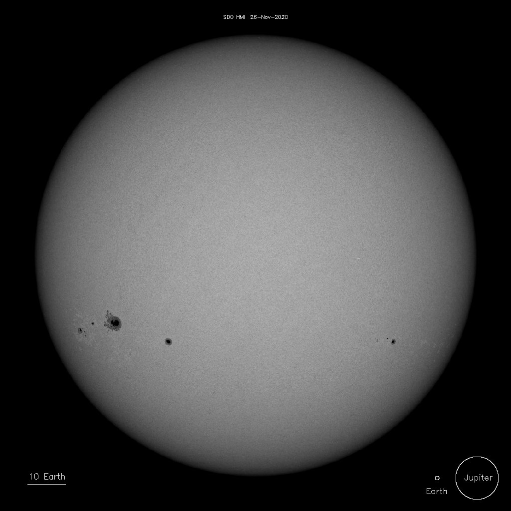 A small Sunspot was visible during the middle of October and was followed by a nice group that was seen on 7th November. Another lovely Sun Spot Group was imaged by the Solar and Heliospheric Observatory (SOHO) on 26th November, shown above and below. These mayhave been the first sunspots as we move into the ‘build up' to the next maximum of the Sun's 11 year cycle of increased activity. The Sun has been passing through its period of low activity over the last year or two and the previous Maximum was rather sparse and disappointing.
