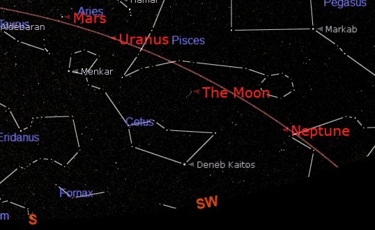Planets observable in the evening sky: Neptune (early evening), Mars and Uranus.