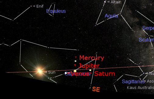 Mercury, Venus, Jupiter and Saturn at sunrise