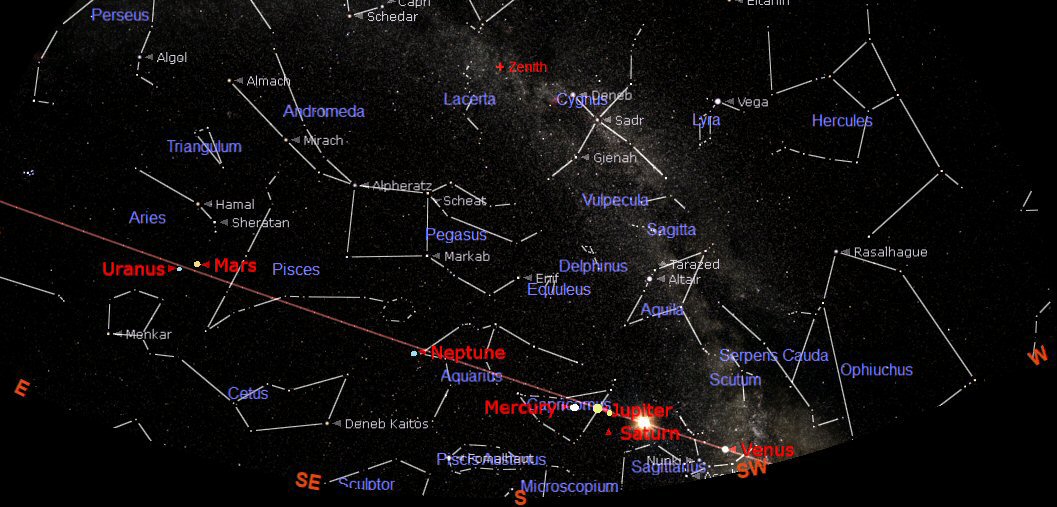Planets observable in the evening sky: Neptune, Mars and Uranus.