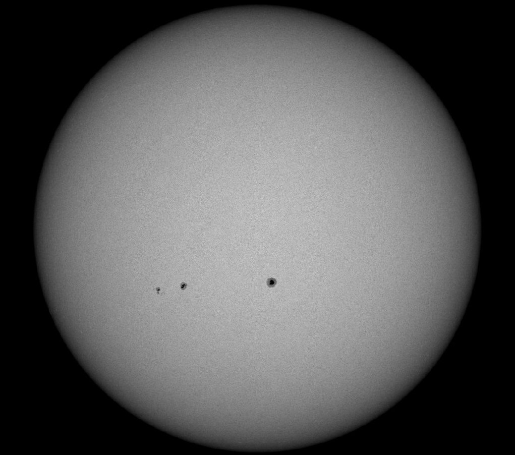 The Sun rises at about 08:10 at the beginning of the month and 07:40 at the end. It sets at 16:00 at the beginning of the month and 16:30 at the end. There have been some very nice Sunspots recently like those seen over Christmas see the image below.