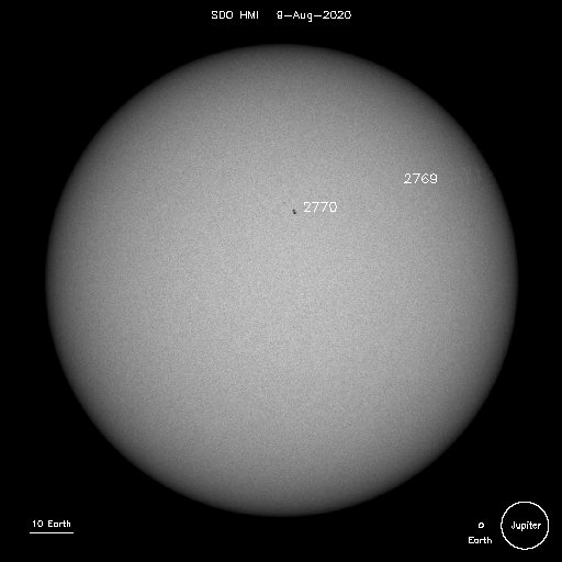 A pair of small sunspots (2770) on 8th August image from SOHO