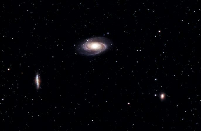 Johann Elert Bode discovered Messier 81 (right, also known as Bode's Galaxy) and its companion Messier 82 (left, also known as the Cigar Galaxy), in 1774. Both are located about 12 million light-years away from Earth in the constellation Ursa Major. M81 is a beautiful face on Giant Spiral Galaxy.