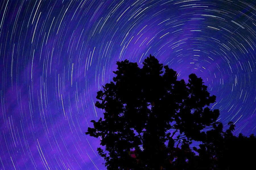 So Ursa Major will move around Polaris once a year but will also move about half way around Polaris during the night due to the 24 hour rotation of Earth on its axis (½ day). However a long exposure using a camera will show the stars as trails as they rotate around the Pole Star as shown in the image below.