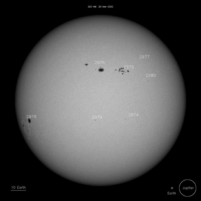 Sunspots imaged by NASA's SOHO Space Observatory on 29th April 2022