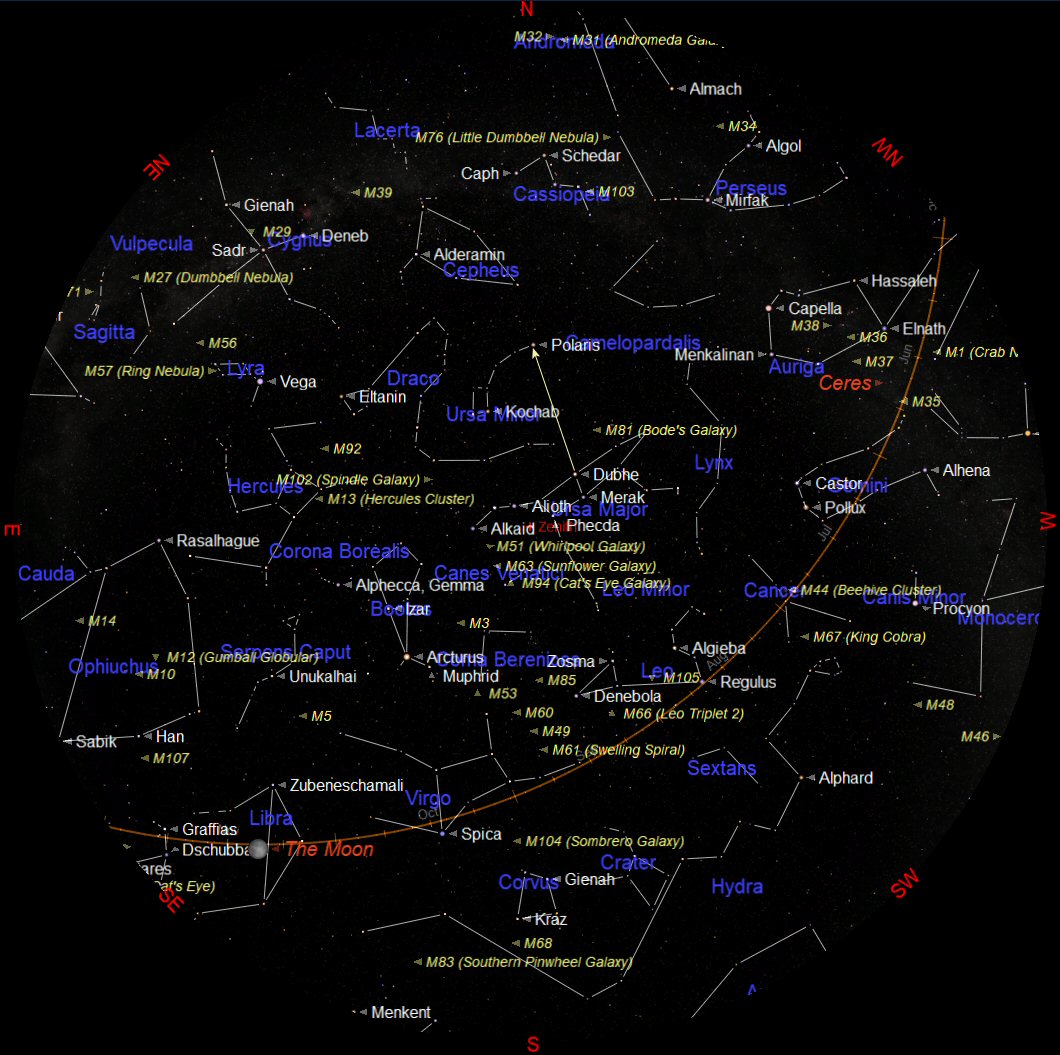 The night sky looking south at about 21:00 BST on 15th May