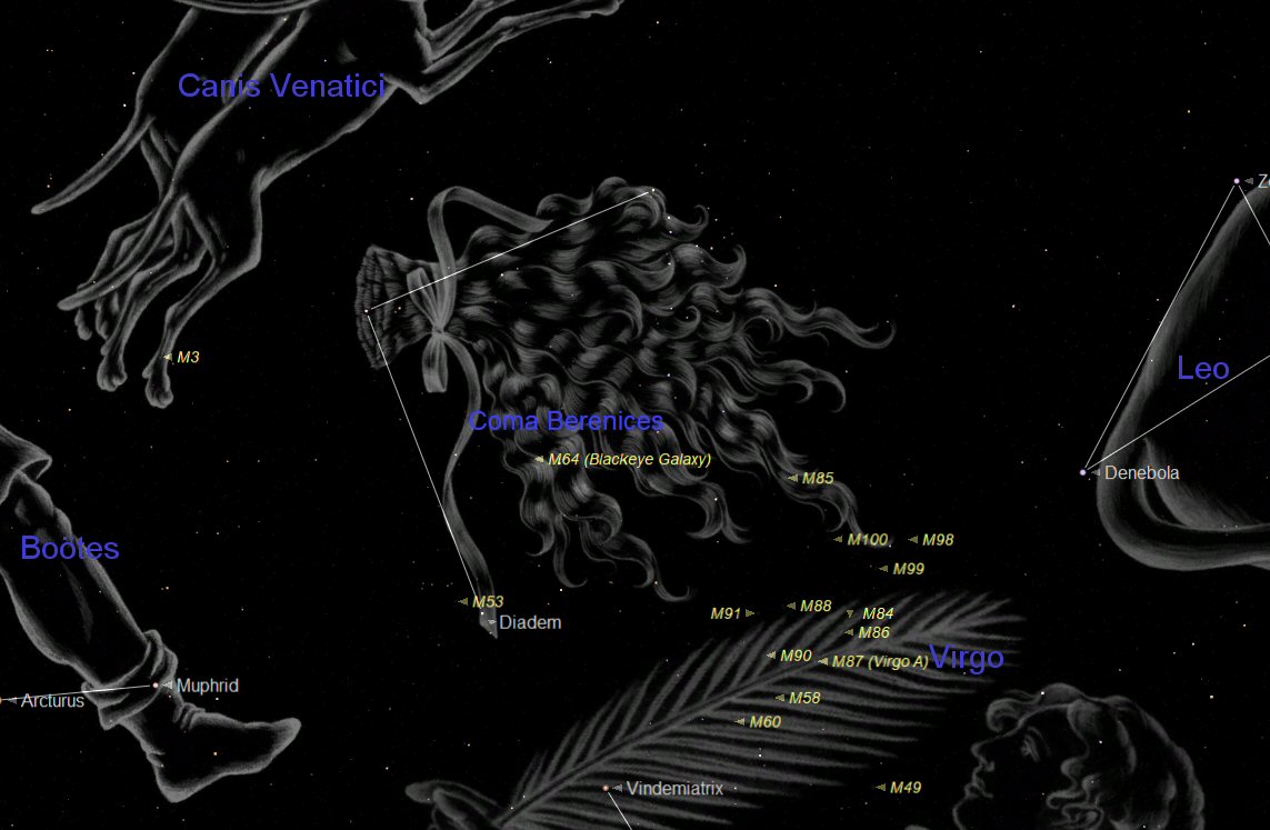 The main importance of Coma Berenices is that it hosts part of the ‘Virgo Galactic Cluster' which spills over from the constellations of Virgo and Leo.