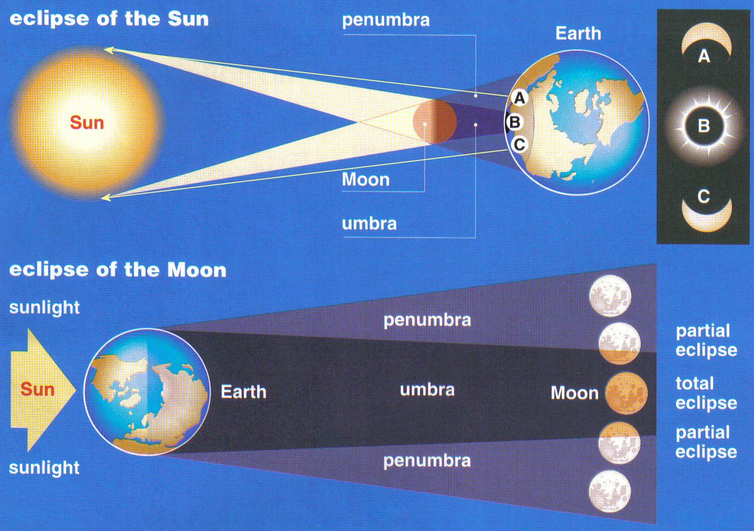 Diagram showing a Solar Eclipse and Lunar Eclipse