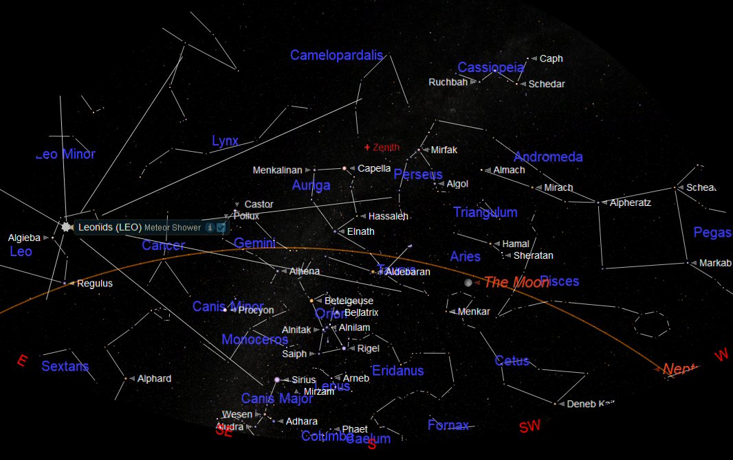 The Radiant of the Leonid Meteor Shower at its peak at 01:00 on 18th November