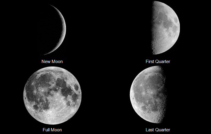 The Moon is the easiest object to observe whether it be with ‘Naked Eye', Binoculars or with a telescope. It is also quite easy to image or even photograph. One of the most interesting things to do is to follow the phases of the Moon. As the Moon moves around its orbit about Earth different areas of the Moon appear illuminated by the Sun. The Moon appears to move across the sky about 15º from west to east each night so we see the phases shown below.
