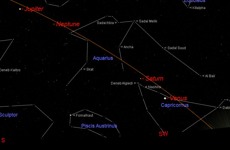 Planets observable in the evening sky: Jupiter and Neptune (in the early evening), Uranus later.